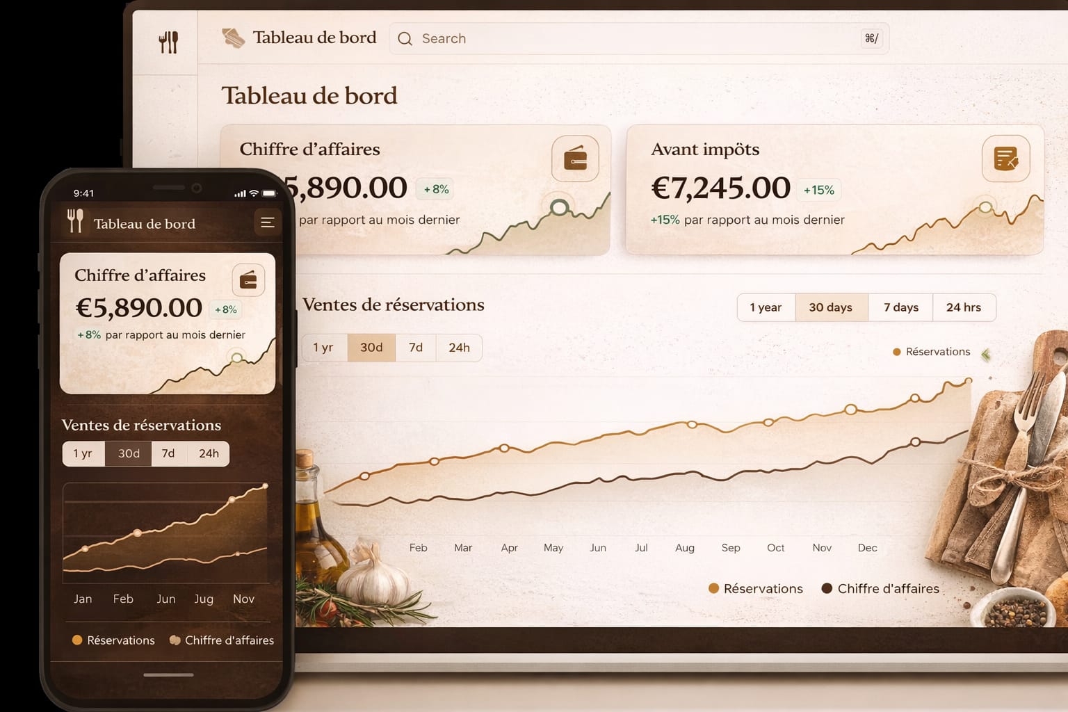 Nous optimisons votre site et votre présence Google pour apparaître sur des recherches locales comme “restaurant + ville”, “brunch”, “bar tapas”.